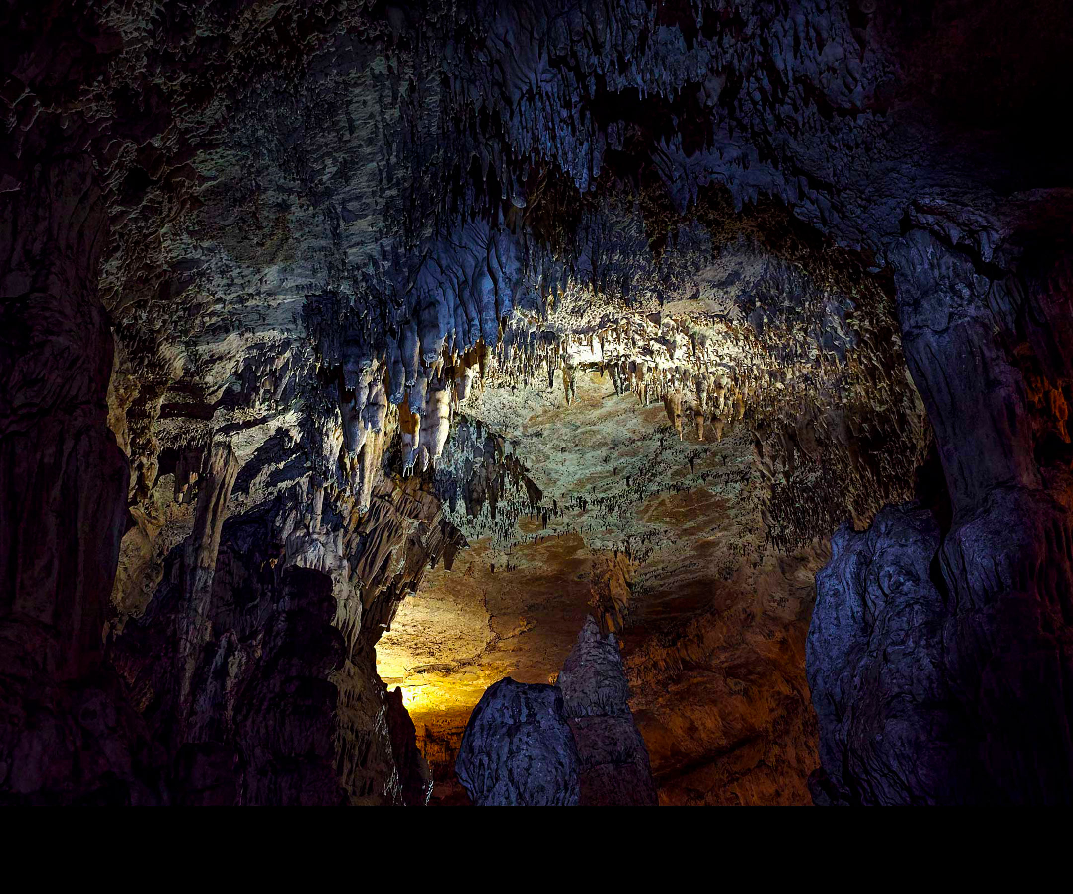 Un cadre au-delà duquel les roches et la grotte disparaissent comme dans la nuit céleste.