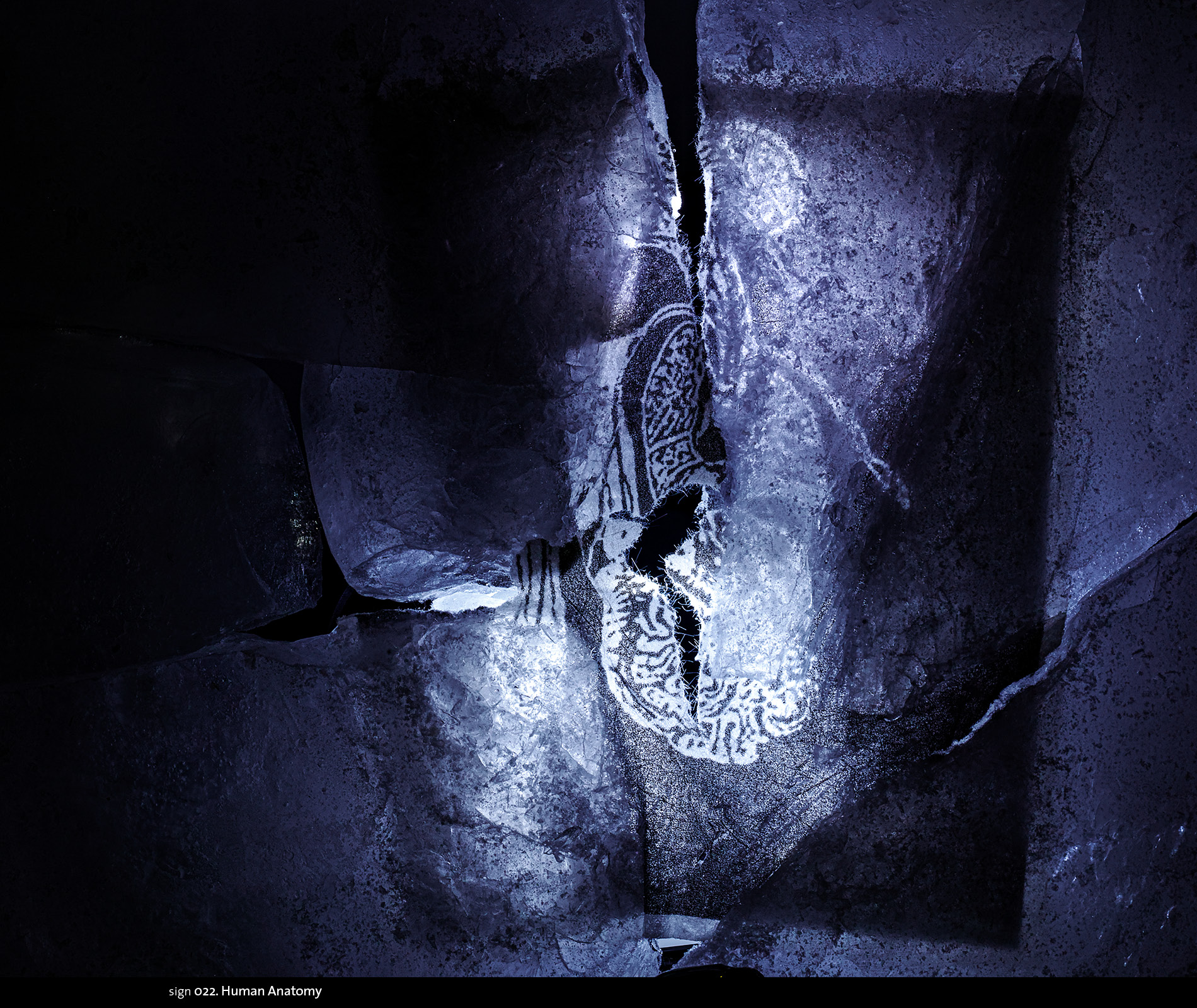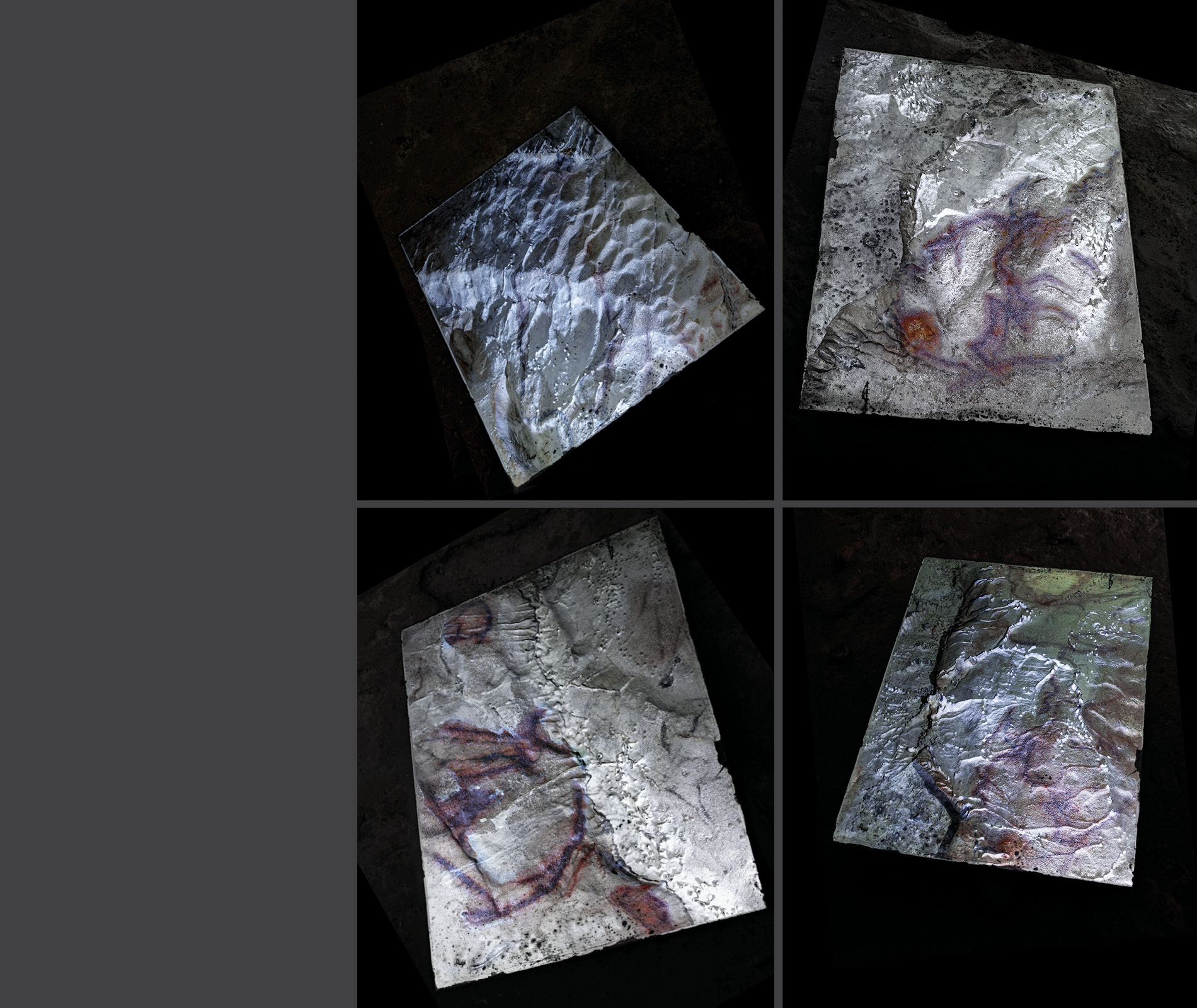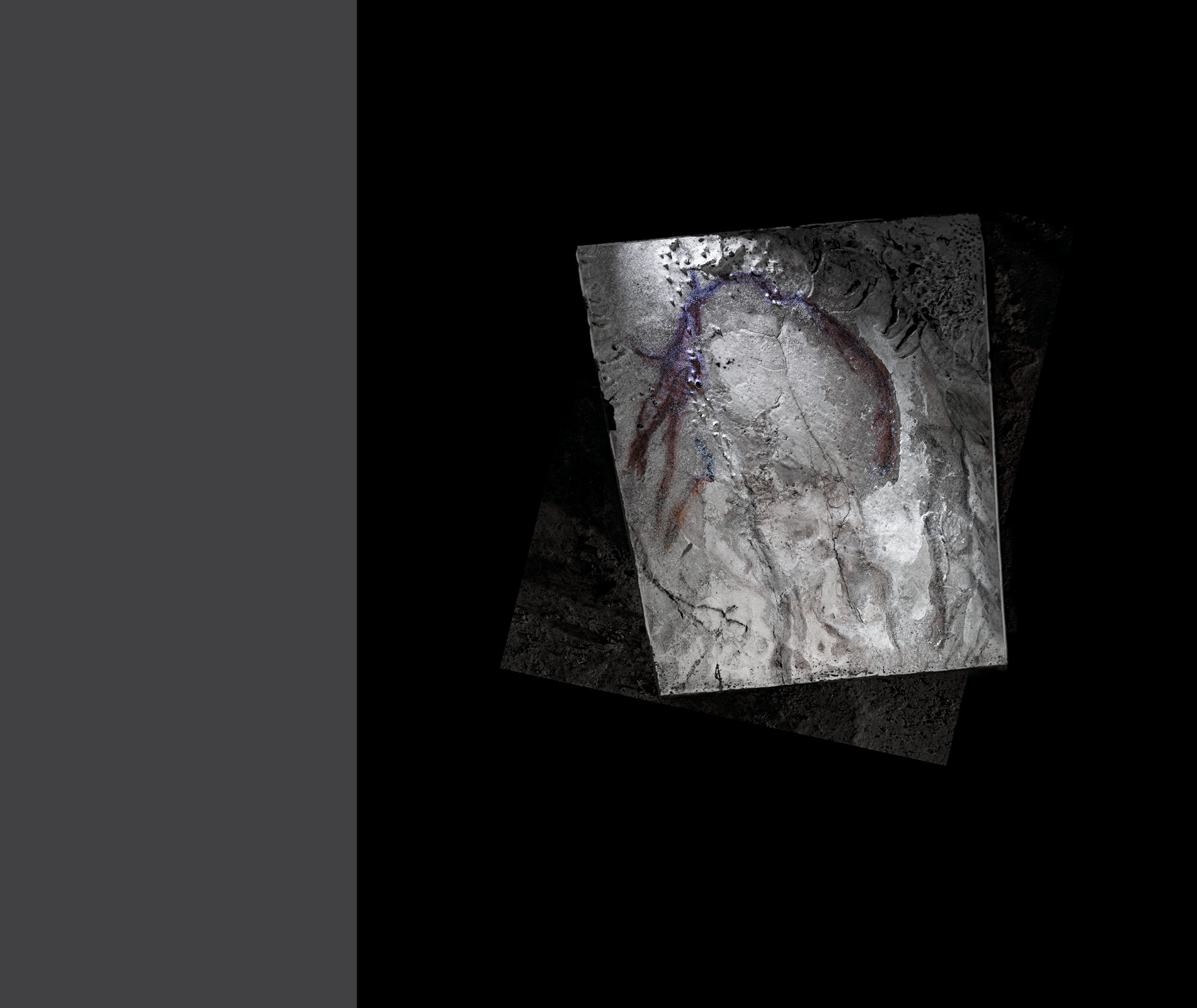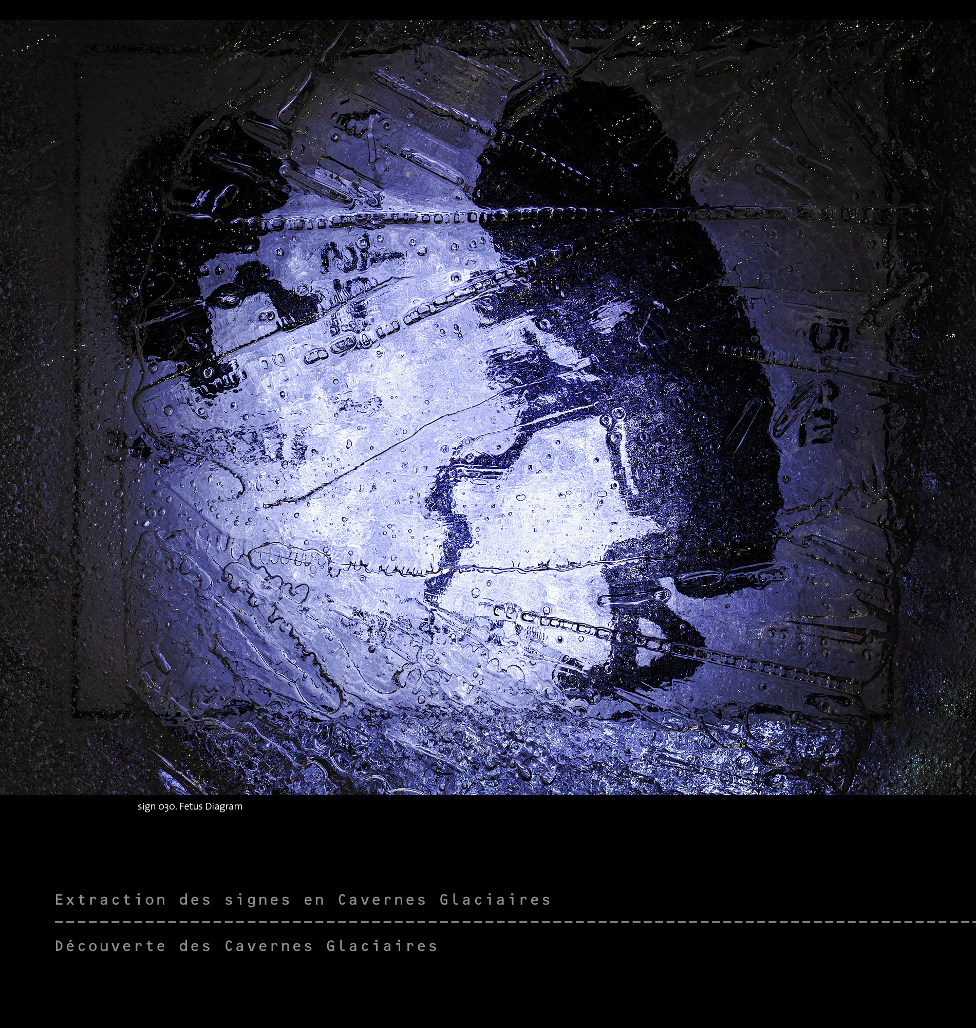 Cette symétrie du temps n’est ici qu’un jeu qui interroge notre désir permanent de laisser des traces de notre présence, lire celles du passé comme imaginer celles du futur. J’offre ces deux temps photographiques pour un voyage imaginaire et poétique, entre la transformation de la grotte d’Arcy-sur-Cure et la découverte archéologique de lointaines et futures cavernes glaciaires.