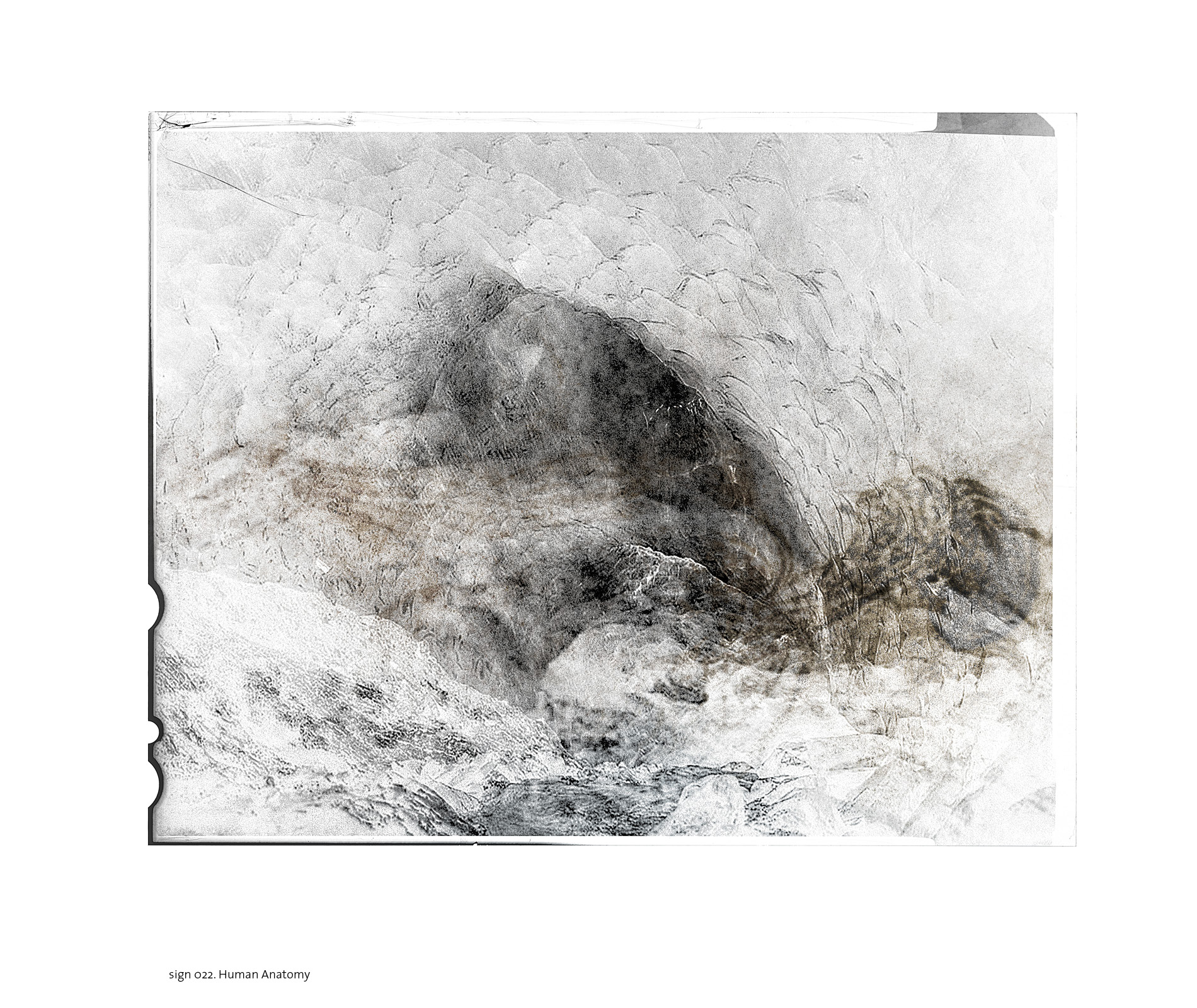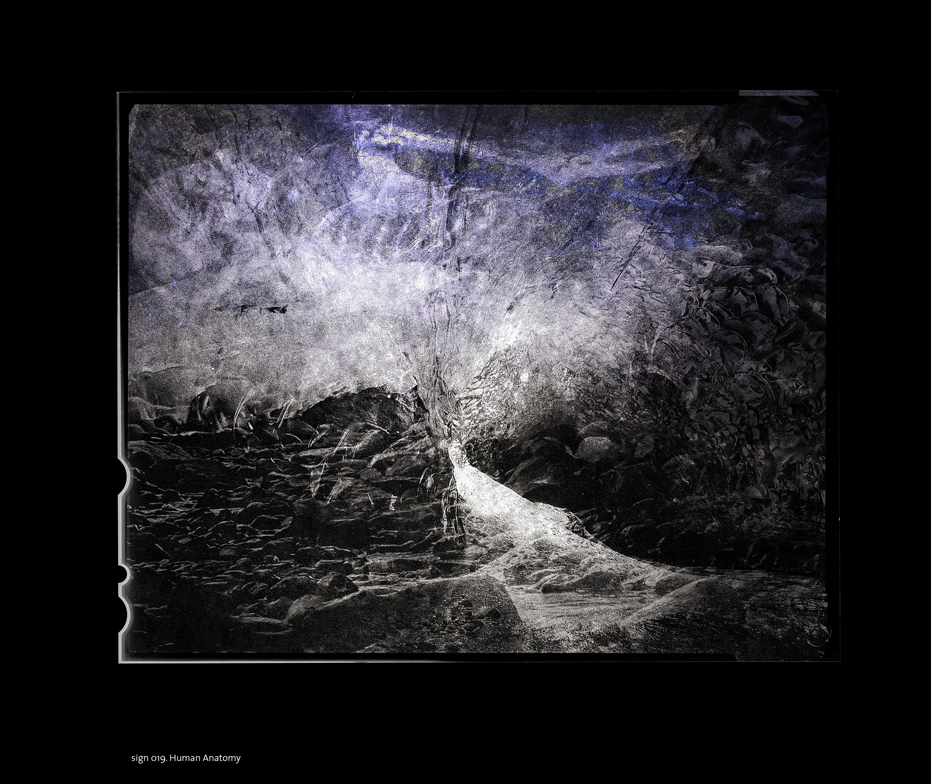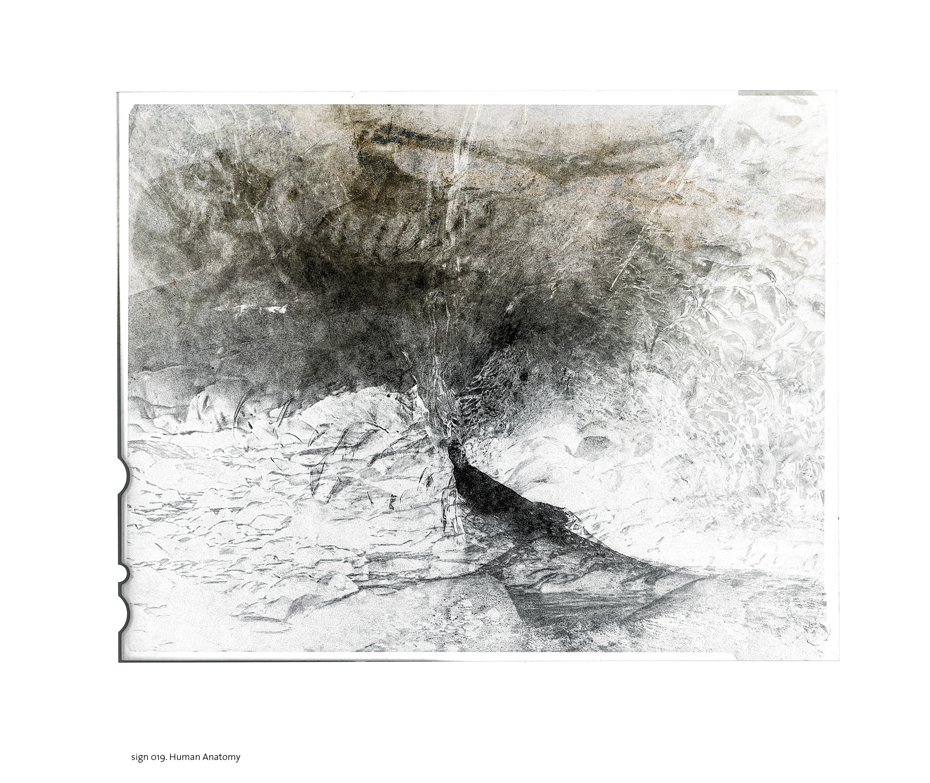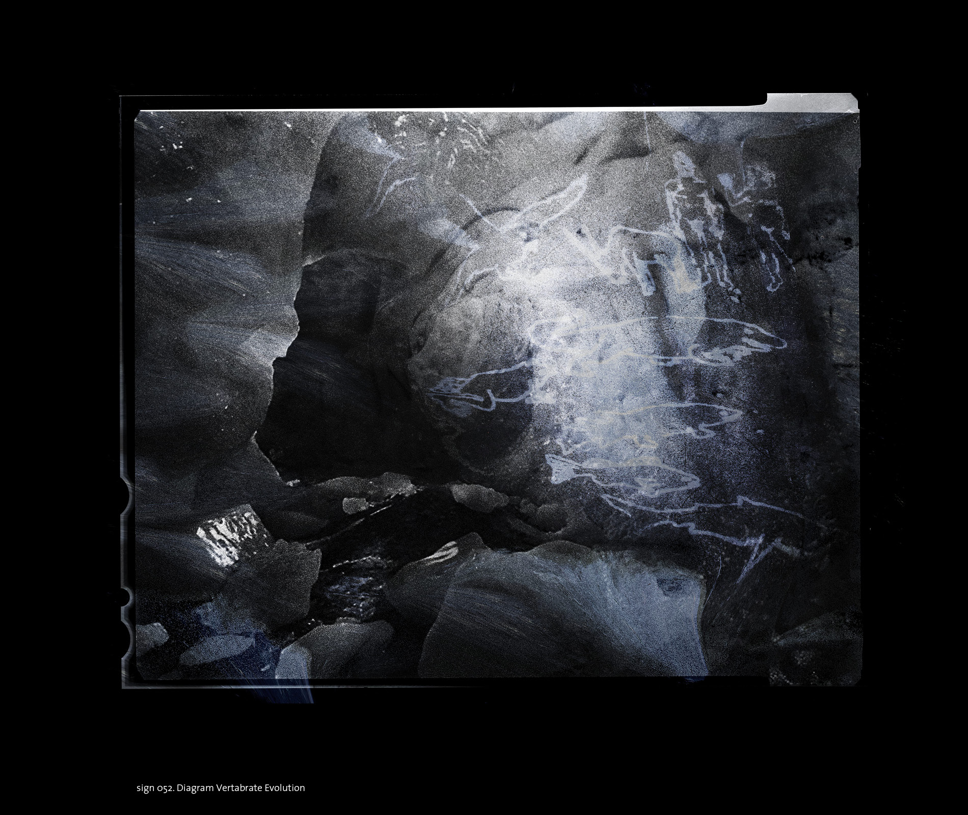 Impressions des vues numériques sur velin d’Arches, et reproduction à la chambre 4x5' afin de retrouver cet aspect d'encrage propre à la gravure.Novembre - décembre 2022 : les Fenêtres Célestes Un miroir pour mieux photographier dessins et peintures peintes en plafond ou sous des creux assez inaccessibles. Un verre spécial pour refléter les volumes et roches, et y réintégrer les signes peints. Souligner les traits et couleurs avec une lumière rasante pour mieux dessiner les reliefs sur lesquels s’appuient les peintures et dessins.