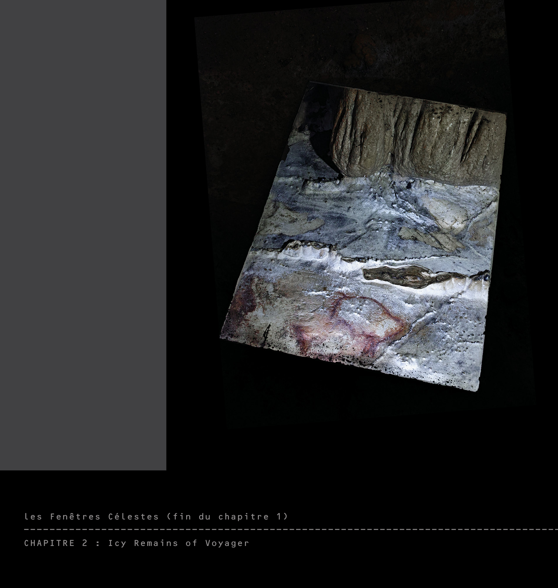 Cette série « Signes des Temps » met en scène 2 chapitres : la grotte d’Arcy-sur-Cure riche en peintures pariétales (-28 000 ans), et dans un second temps celui des sondes Voyager envoyées par la Nasa embarquant signes graphiques et messages audio de l’humanité gravés sur disque de cuivre, explorant les confins de notre système solaire, comme une bouteille à la mer. Qui les retrouvera ? une autre civilisation, la nôtre dans plus de 30 000 ans, retrouvés sur une lointaine planète glacée ?